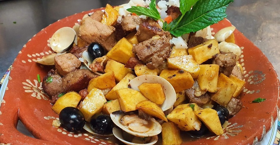 Sauté de porc avec palourdes et pommes de terre et ses herbes aromatiques