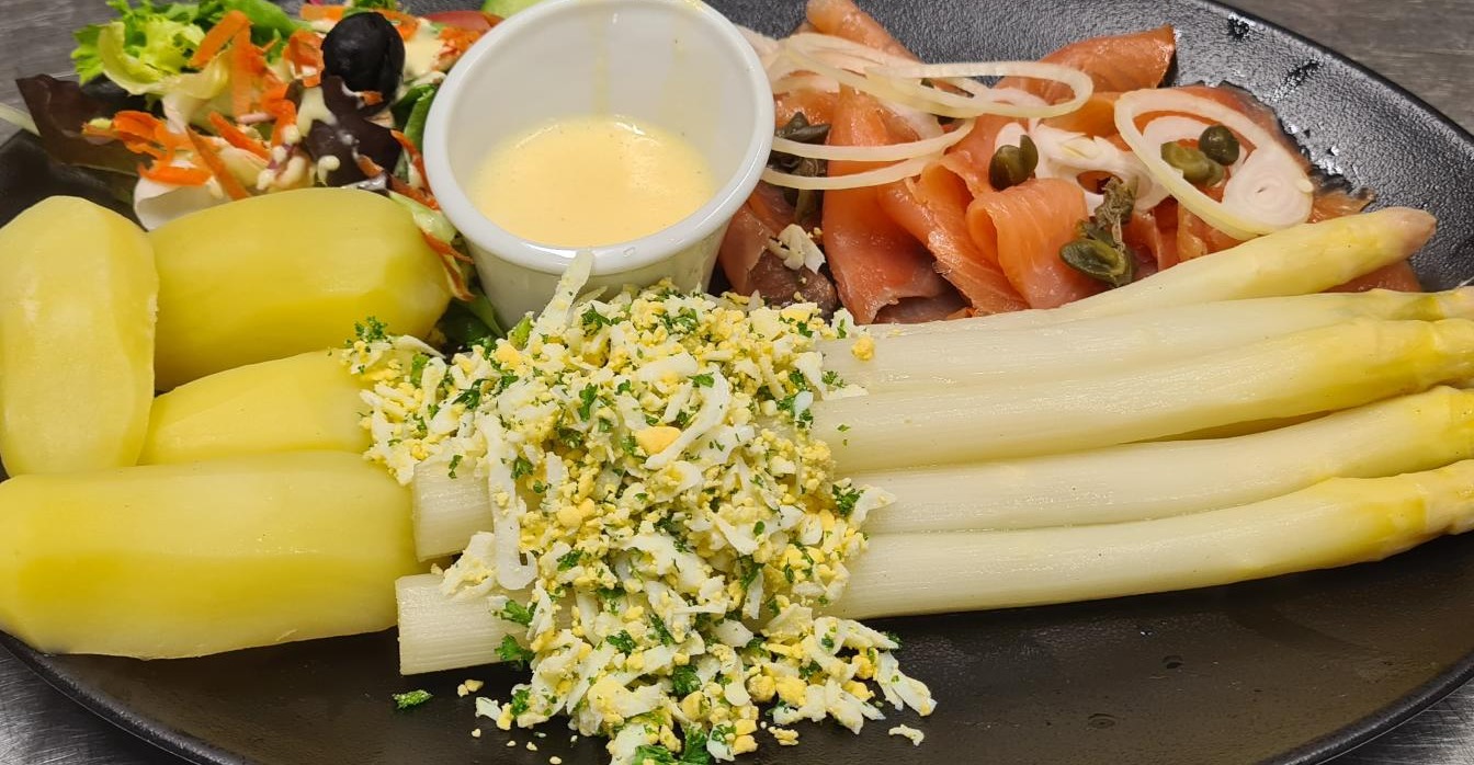 Asperges au saumon fumé s. Hollandaise